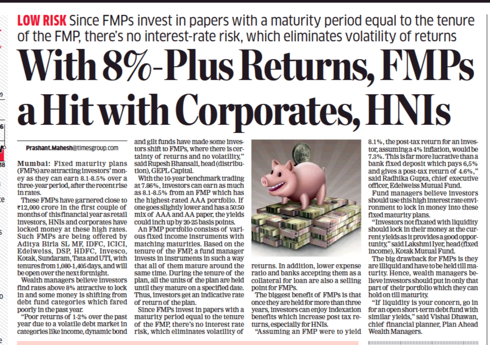 An individual can also invest in a debt of a hybrid mutual funds based on one’s risk appetite. Then for regular income, set up an SWP or systematic withdrawal plan which pays out a specific sum at regular intervals to the investor. If you have risk appetite and ample liquidity, you can also invest a portion in equity funds which will help beat inflation in the long run. Post retirement period need not be a short period. You must prepare for what if you outlive your expected life expectancy.